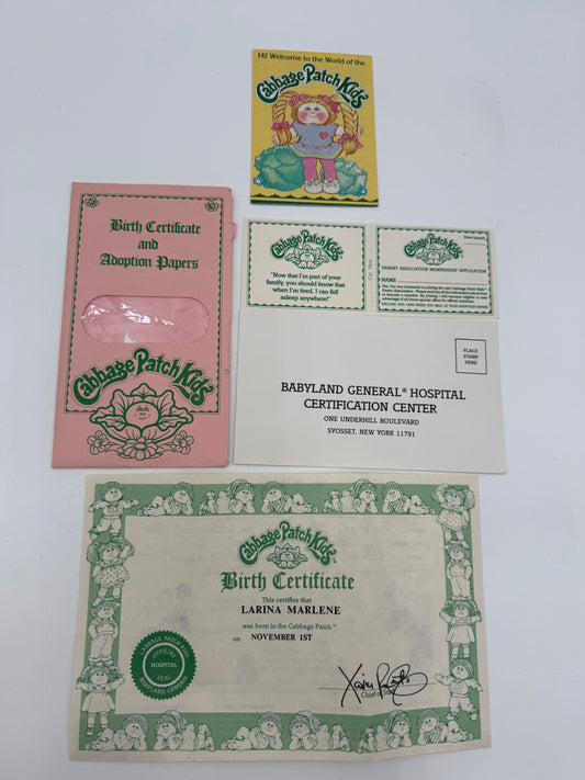 Cabbage Patch - Birth Certificate / Adoption Papers - Latina Marlene 1983 #105367